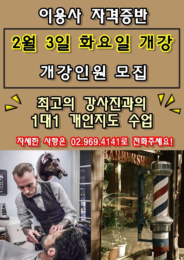 [개강안내] ★이용사 자격증반 2월3일 개강,개강인원 모집★